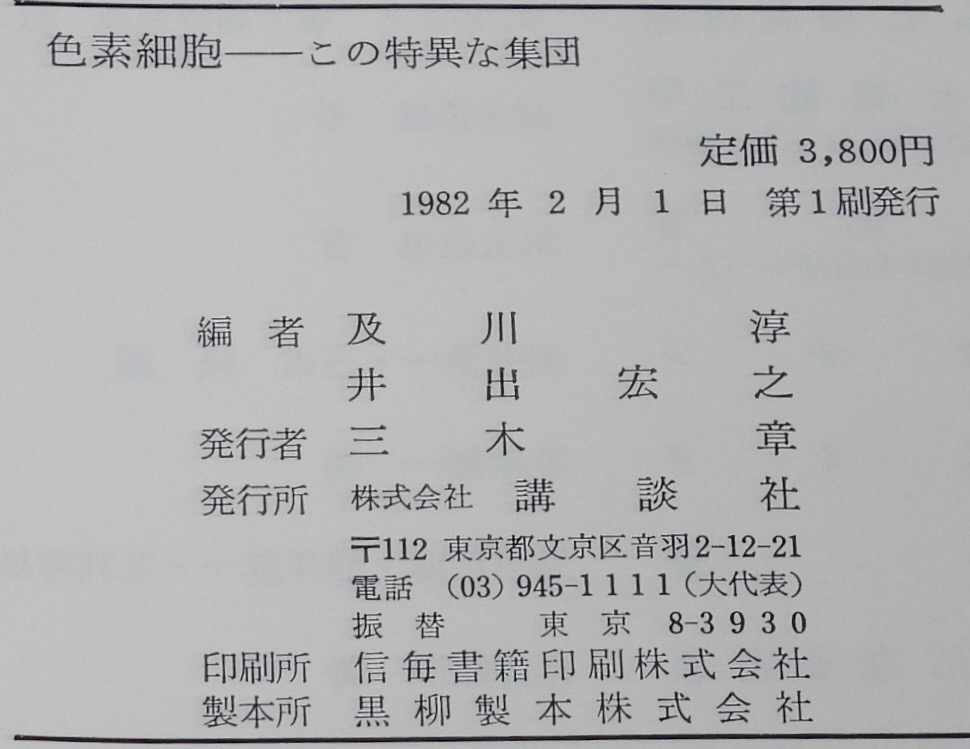 • 解説 色素細胞 この特異な集団 講談社 1982年2月第1刷 A5判ハードカバー.