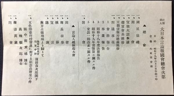 社団法人 大日本言論報国会総会次第