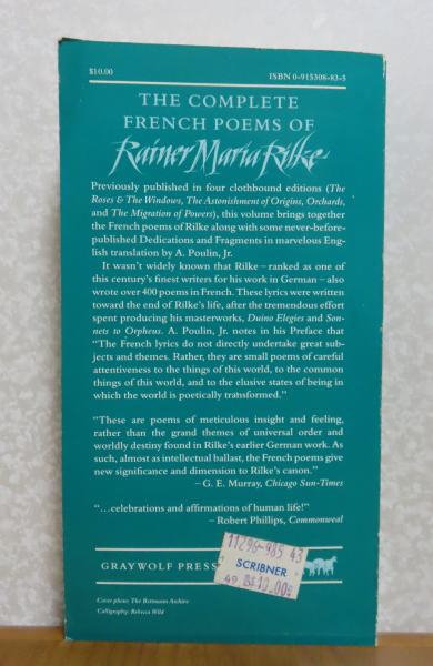 • 著者 ライナー・マリア・リルケ Rainer Maria Rilke ; Transrated by A.Poulin,Jr.