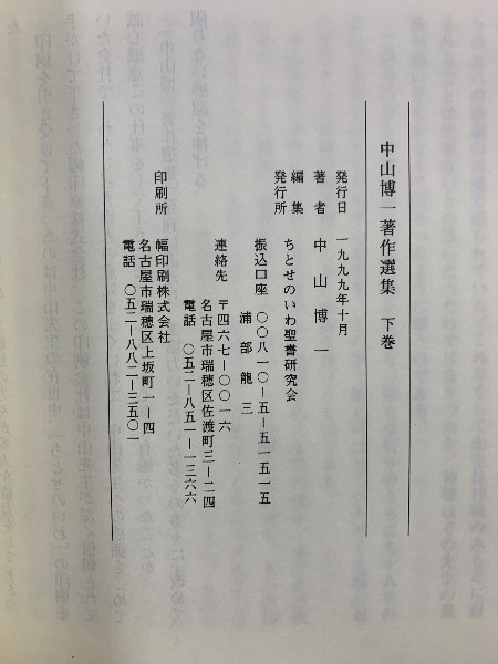 中山博一著作選集 上下・続 全3巻揃