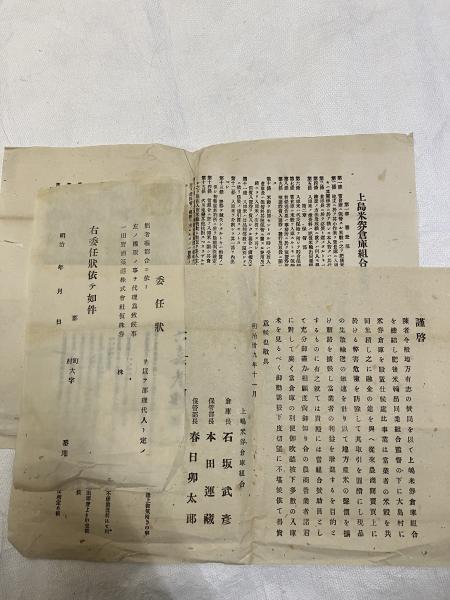上嶋米券倉庫組合 勧誘書・業務規約・委任状