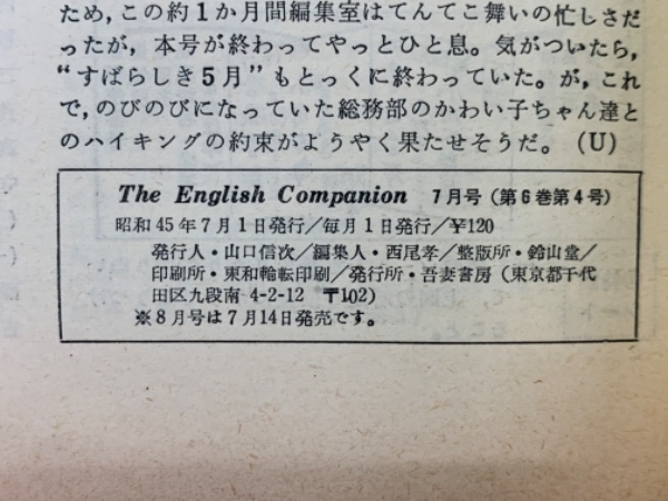 イングリッシュコンパニオン 昭和45年7月号
