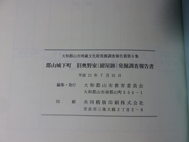 郡山城下町 旧奥野家(紺屋跡)発掘調査報告書:大和郡山市埋蔵文化財発掘調査報告書第6集