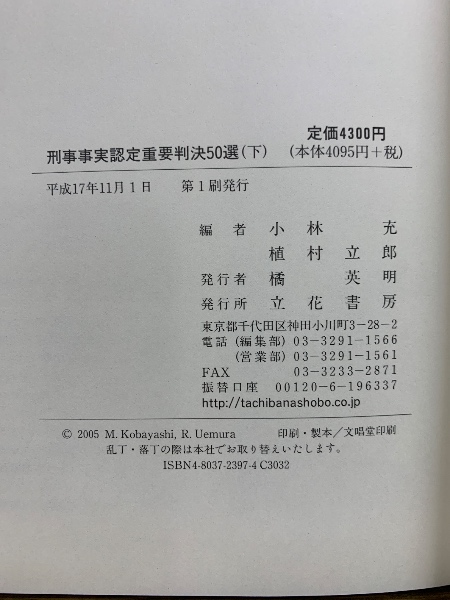 刑事事実認定重要判決50選 上下揃