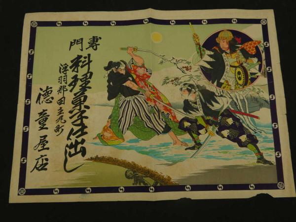 8 5 ①引札 引き札 専門料理菓子仕出し 浮羽郡田五丸町 徳童屋店 石版色刷 約38×52cm