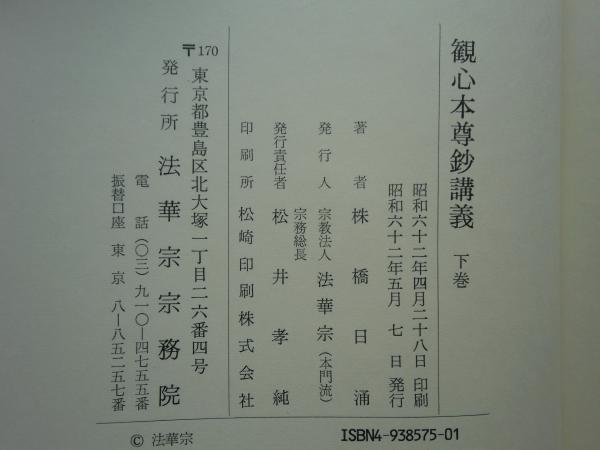 観心本尊鈔講義 上巻・下巻 2冊揃