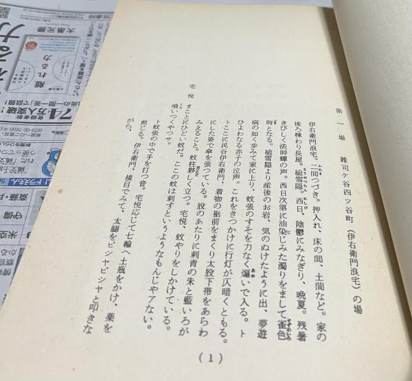• 解説 裸本 岩波ホールでの舞台の台本 少経年ヤケシミ 65頁の薄いもの 原作:鶴屋南北 演出:武智鉄二 脚本:落合清彦 美術:朝倉摂 出演:中村扇雀、白石加代子、伊藤雄之助、東恵美子等 ソフトカバー B5