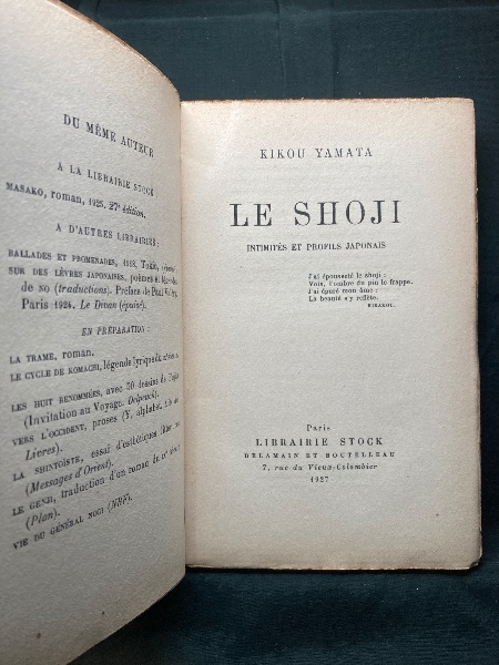 LE SHOJI ; INTIMITÉS ET PROFILS JAPONAIS J'ai épousseté le shoji : Vois, l'ombre du pin le frappe. J'ai épuré mon âme : La beauté s'y reflète. KIKAKOU.