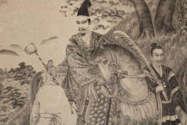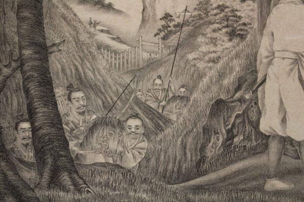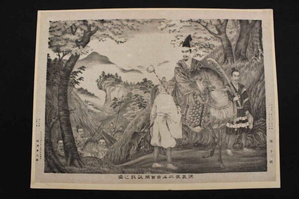 4 5 源義家 於名古会関 詠歌之図 石版刷 約29.5x40.5㎝