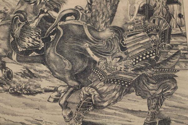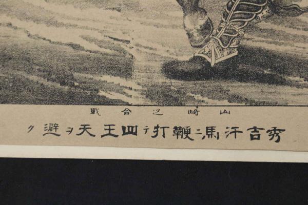 4 5 秀吉汗馬二鞭打テ四天王ヲ避ケ 石版刷 約31x40.5㎝