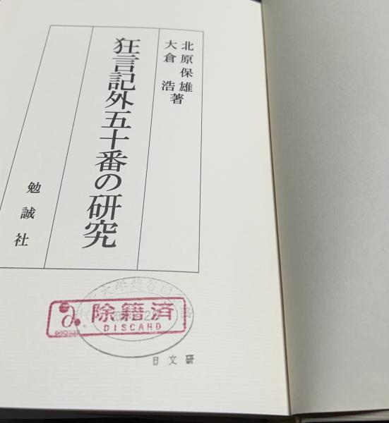 • 解説 注意【大学図書館廃棄本(背と表紙と見返しにラベル、見返しに貸し出し票とラベル、扉に図書館印と除籍印 】 裸本 状態並 765頁 第1部 影印篇 京都大学部蔵元禄13年刊野田版「新板絵入狂言記外五十番」の原寸大影印 第2部 翻字篇 第3部 解説篇 第4部 索引篇 B5厚冊 平成9年刊