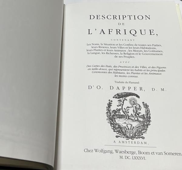 • 解説 フランス語 展覧会図録 カバー(縁角傷み多し)付 本体小口等少経年シミ 375頁 図版入 p.91-357に1686年刊の「Description de l'Afrique ... / traduite du O. Dapper」(Chez Wolfgang, Waesberge, Boom et van Someren, Amsterdam)の全編復刻入 ハードカバー 24.5x32.5cm ISBN:2906067091