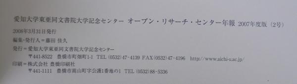 Annual reports of Open Research Center Toa Dobun Shoin Memorial Center Aichi University