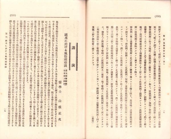 • 著者 〈警察と外国人 12頁完〉〈講演 欧米に於ける風俗視察談 20頁〉〈工場危険予防談 11頁〉〈少年犯罪附(プロベーション・システム)承前・7頁完〉〈自転車の取締 承前・9頁未完〉