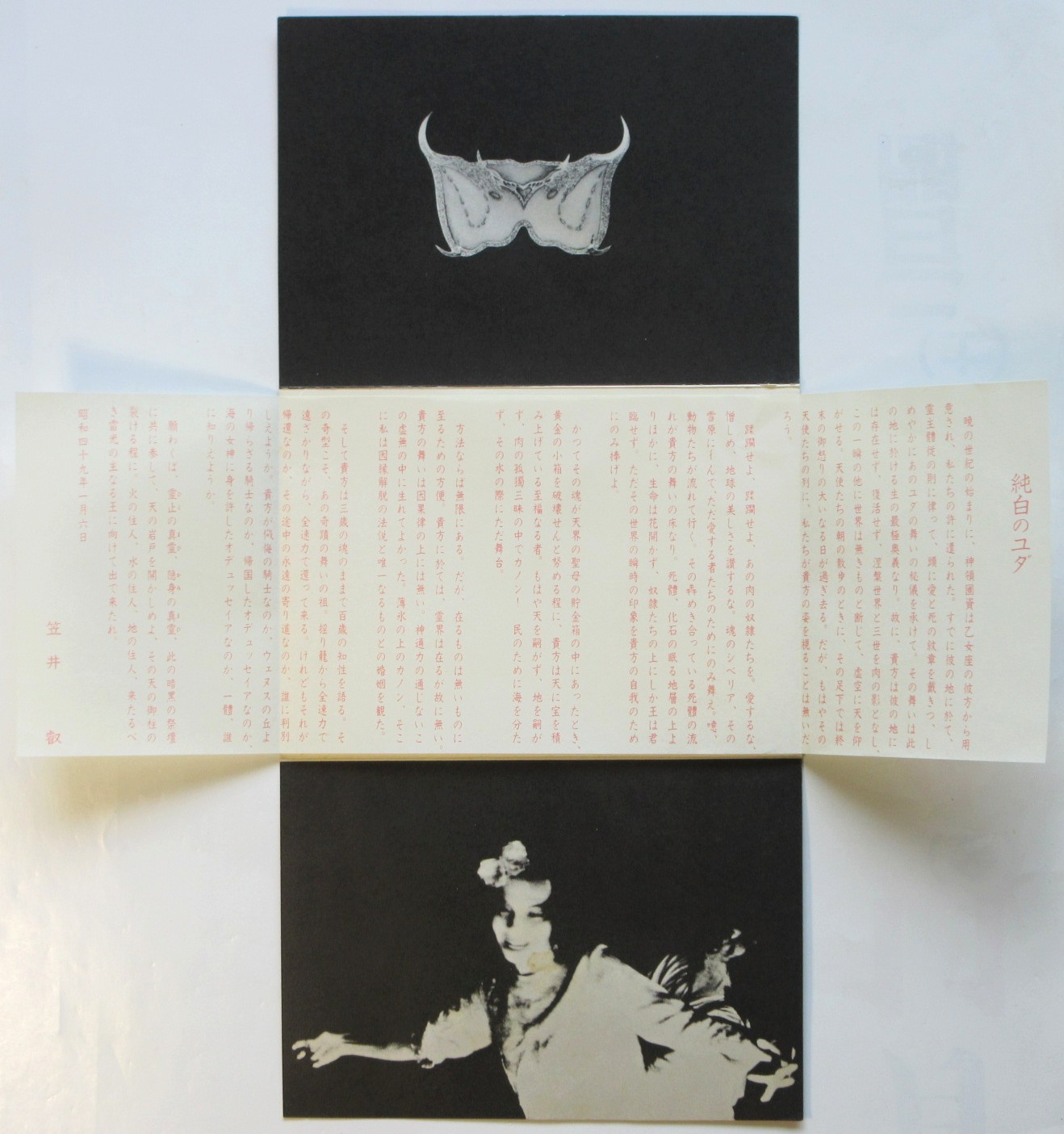 • 解説 ●花梛菜 昭和49年 11x15.5㎝3ッ折 跋:笠井叡