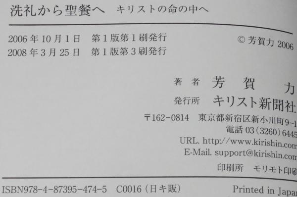 • 解説 洗礼から聖餐へ キリストの命の中へ 芳賀力 キリスト新聞社 2008年3月第3刷 B6判185p.