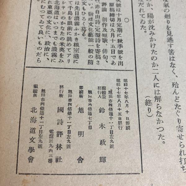 北海道文学 夏季号 皇紀2602年版 第8巻 第36号