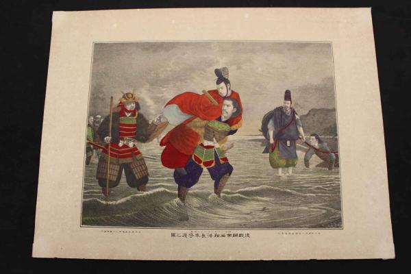 8 6 後醍醐帝名和港 長来守護之図 渡邊忠久 明治20年 石版刷 明治 石版画