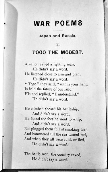 (洋)WAR POEMS JAPAN AND RUSSIA 斯波貞吉編著 初版15.5×9.5㎝47p 元元堂書房 明治39年