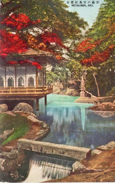 戦前絵葉書 ○安芸の宮島 紅葉谷 安藝の宮島 広島県廿日市市 古写真 原色刷○和本古書古文書