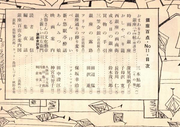 ※銀座百点No11,1955 時雨の銀座=深尾須磨子・あんみつ娘=田中澄江・大谷竹次郎さんの文化勲章と新しい仁左衛門=池田弥三郎、円地文子ほか