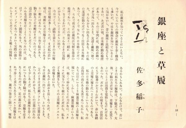 ※銀座百点No17,1956  銀座と草履=佐多稲子・座談会相撲趣味の会=松内則三・和歌森太郎・保田武宏 おとくいさま=田辺猛・顔見知り=中村武志・赤線地帯の問題=円地文子、安藤鶴夫、池田弥三郎等