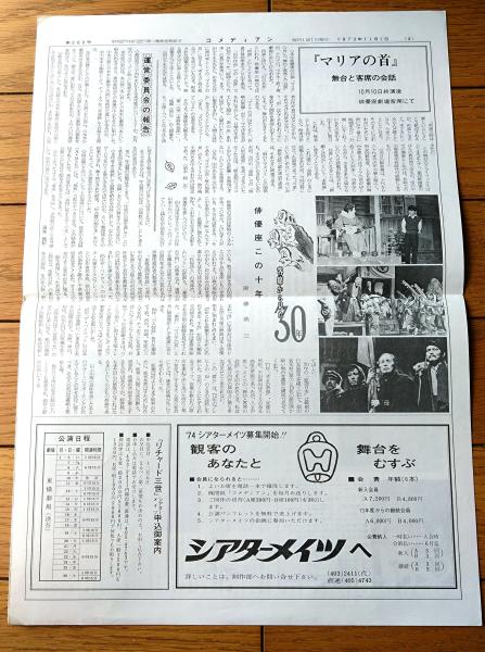 【コメディアン(昭和48年11月号)/30周年記念公演「リチャード三世」等】劇団俳優座/公報紙