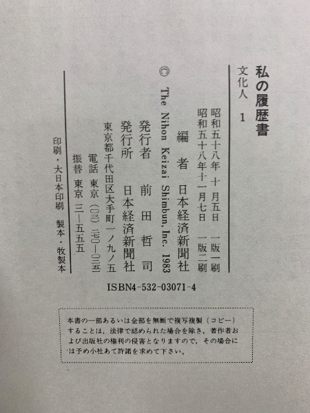 私の履歴書 文化人 全21巻(別巻共)