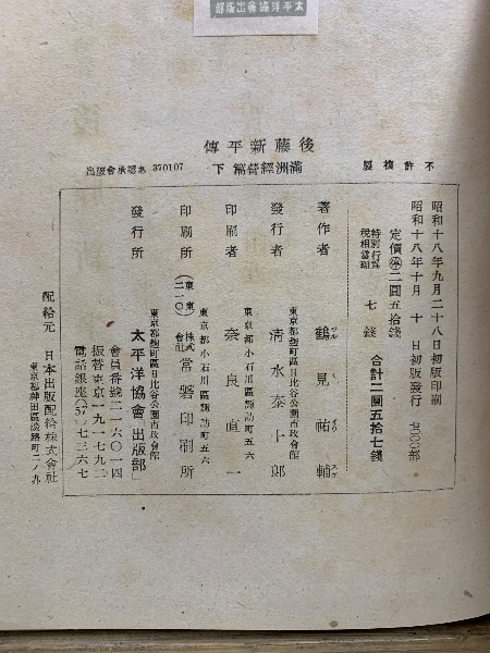 後藤新平伝 滿洲經營篇 下