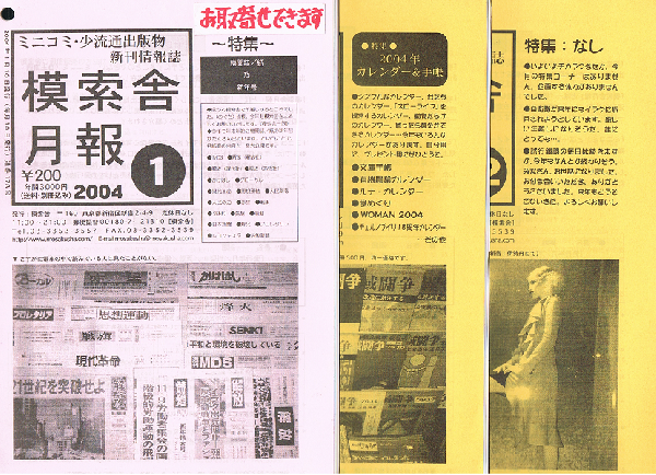 模索舎月報 2003年11・12号 2004年1・2・3・8号+模索舎取扱い定期刊行物リスト 2004年版