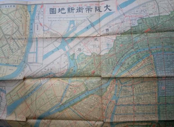 • 解説 彩色地図 裏面大阪市街電車図等有 54×78 折れ目少切有