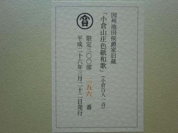 小倉山庄色紙和歌(小倉百人一首)因州池田侯爵家旧蔵
