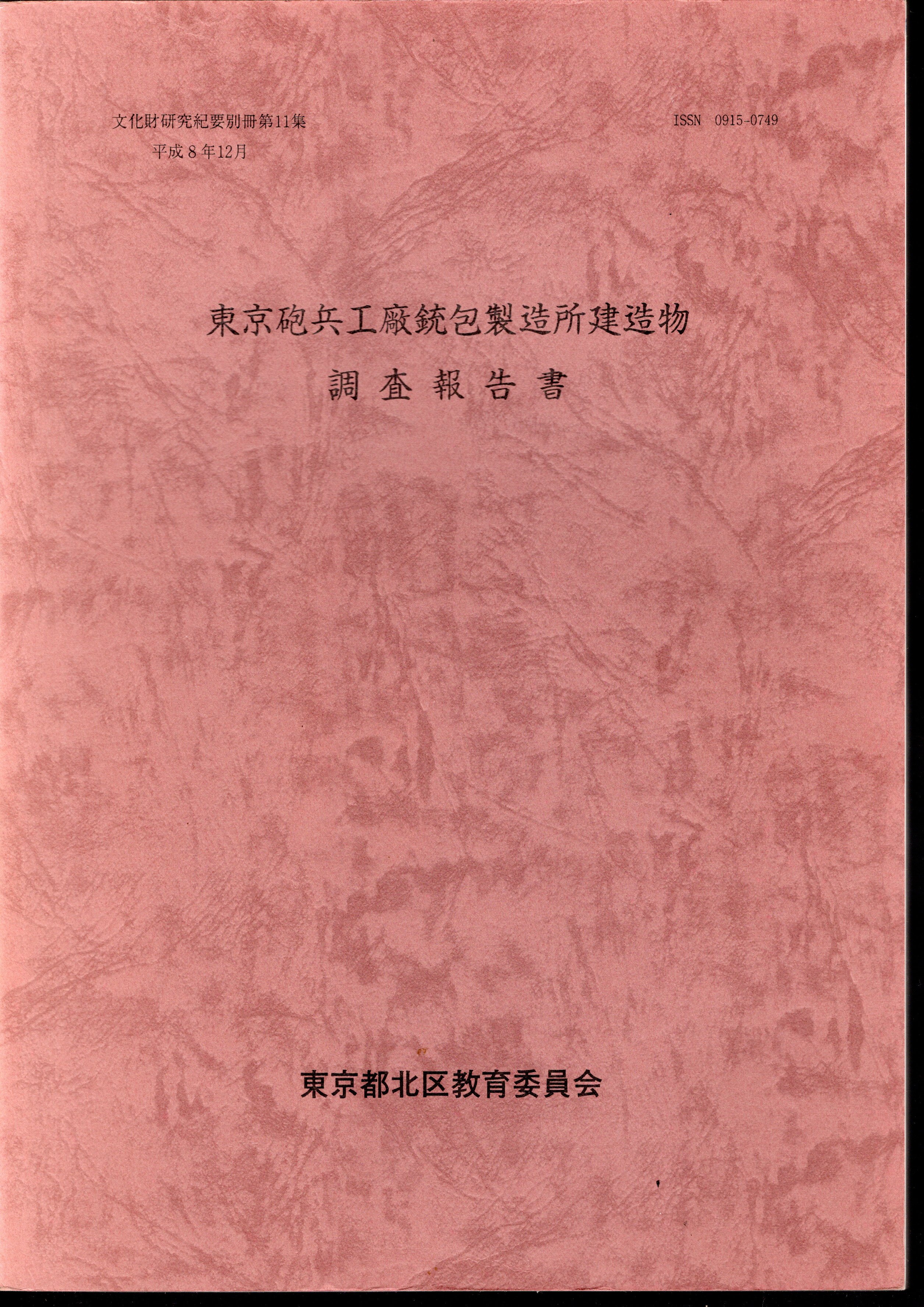 文化財研究紀要別冊第11集 東京砲兵工廠銃包製造所建造物調査報告書