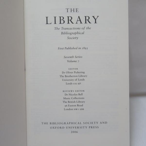THE LIBRARY The Transactions of the Bibliographical Society Seventh SeriesVolume 7