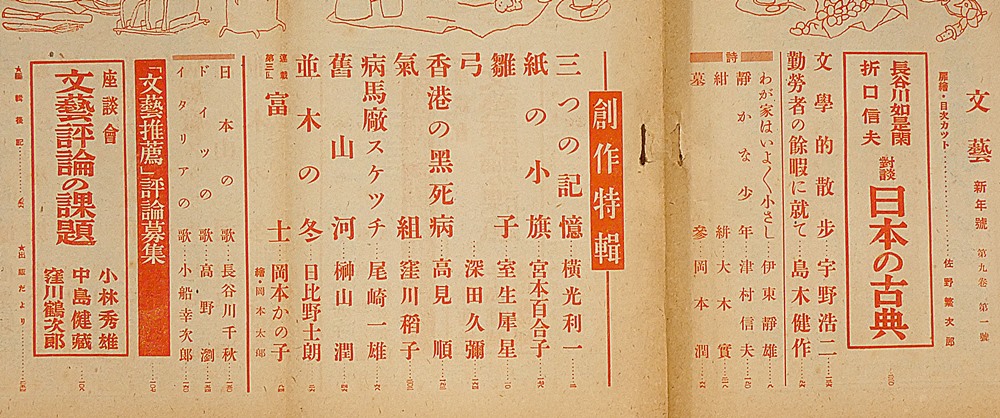 文藝 第9巻第1号 昭和16年1月 折口信夫・長谷川如是閑・対談/小説特集・横光利一・室生犀星・高見順・尾崎一雄・長谷川千秋ほか