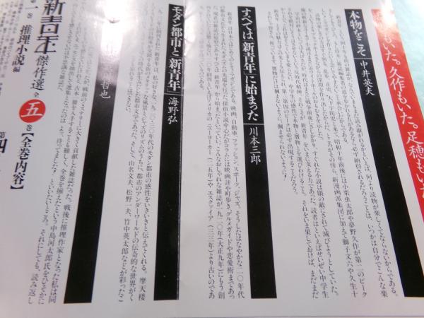 「新青年傑作選」中島河太郎編立風書房1991刊の内容見本推薦文の原稿。当該掲載内容見本を附す