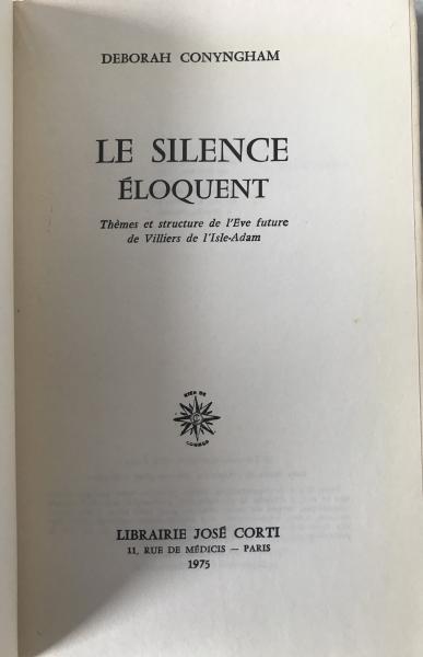 1975 José Corti Deborah Conyngham "Le Silence Éloquent" | Villiers de l'Isle-Adam Study | French Literature