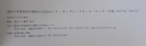 オープンリサーチセンター年報 愛知大学東亜同文書院大学記念センターオープン・リサーチ・センター年報 Annual reports of Open Research Center, Toa Dobun Shoin Memorial Center, Aichi University