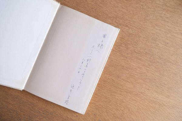 見開き(扉ページ)に万年筆による書き込みがあります。個人宛の献呈メッセージと思われますが、詳細な人物の特定はできません。
