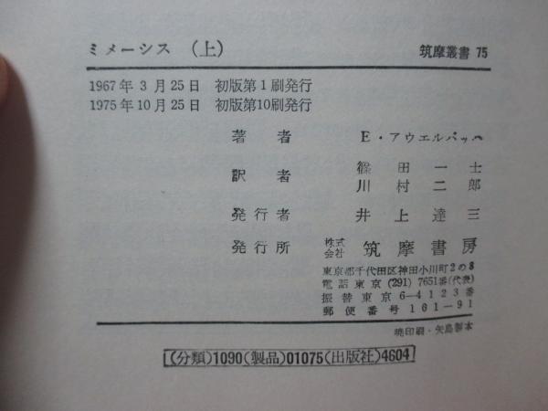 • 解説 「ミメーシス : ヨーロッパ文学における現実描写」 上・下巻セットです。写真掲載しているように、カバーの周縁部と背に、若干のヨレと焼けがあります。きれいな状態で読んでいただきたいので、OPPで透明カバーを巻いて、発送します(簡単に取れますし、本体に直接、接着しないので、跡が残ることもありません)。ご了解ください。本の中身に問題はありません。上巻(1975年発行・10刷)、下巻(1975年発行・9刷)。(帯付)で、ページ・カバー破れ、落丁、書き込みはありません。2冊をひとまとめにして、クリックポスト(追跡可能)で、即時発送します。宜しくお願いします。