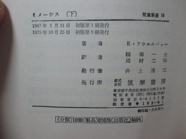 「ミメーシス : ヨーロッパ文学における現実描写」 上・下巻セット <筑摩叢書>