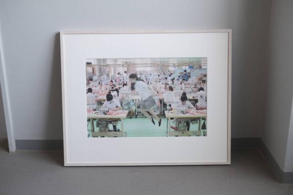 ベトナム・ビエンホアのワコール工場内で撮影された “浮遊” の一瞬を捉えた作品で、lambdaプリントによる発色と質感が特徴です。