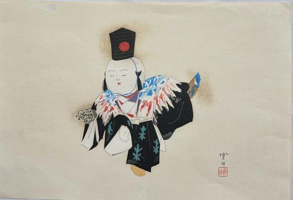 三宅鳳白筆 木版画 「御所人形」