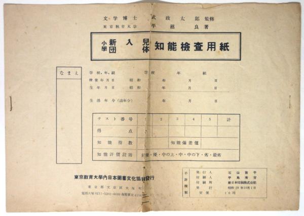 小学新入兒団体知能検査用紙