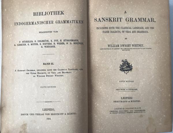William Dwight Whitney - A SANSKRIT GRAMMAR - 1924 Leipzig 5th Ed. - Breitkopf & Hartel - Veda & Brahmana 5th Edition