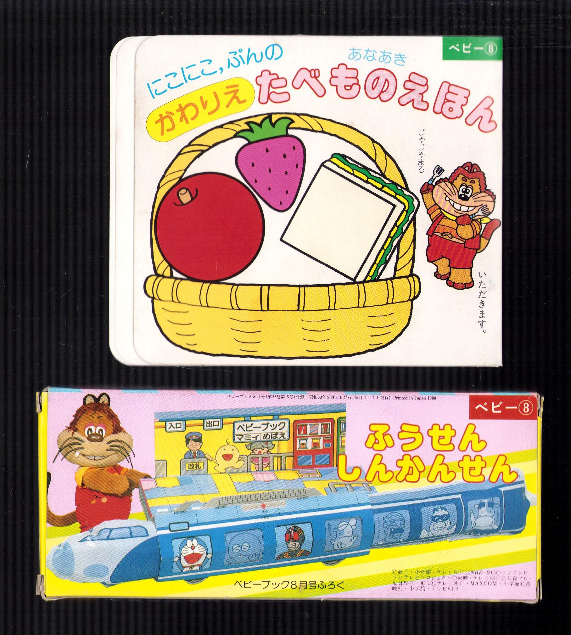 (付録)にこにこ、ぷんのかわりえたべものえほん/ふうせんしんかんせん 2点一括 -ベビーブック昭和63年8月号付録-
