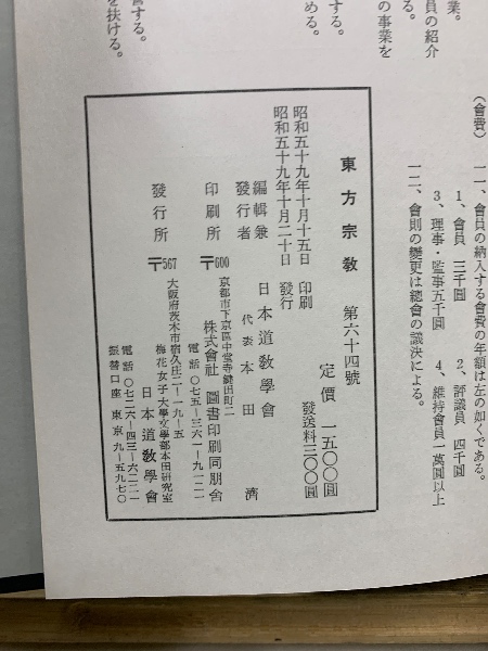 東方宗教 第60-64号合本 昭和57-59年