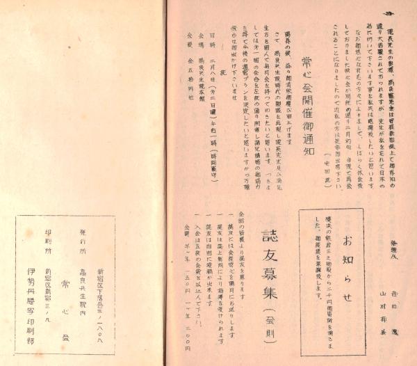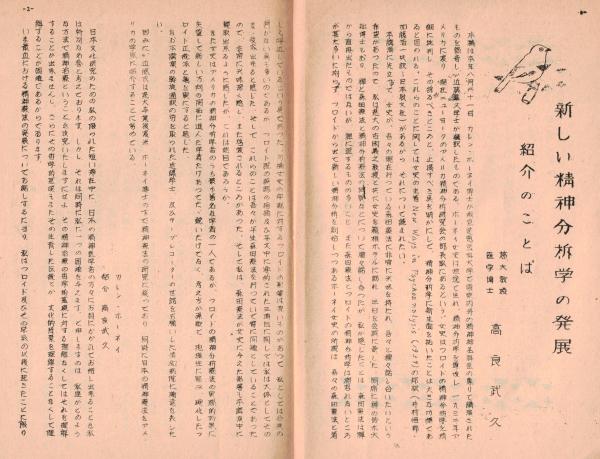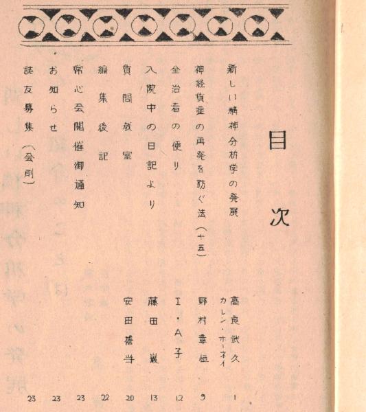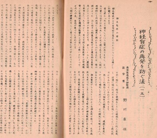 ※常心第四巻第一号 新しい精神分析学の発展=高良武久・神経質症の再発を防ぐ法(15)野村章恒ほか (東京新宿区の高良興生院内誌です)
