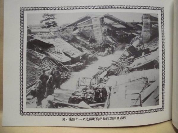 • 解説 (復刻本)明治二十四年十月二十八日 震災記録、明治二十四年 濃尾大震災写真帖 昭和48年10月発行 2冊組、共箱付き 歳月を経過したものですので、共箱には日焼けやスレなどの劣化があります。 本体のコンディションはおおむね良好です。