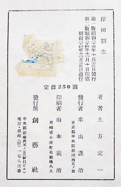岸田劉生(論) 土方定一 B6判箱壊れ 創藝社 昭和24年